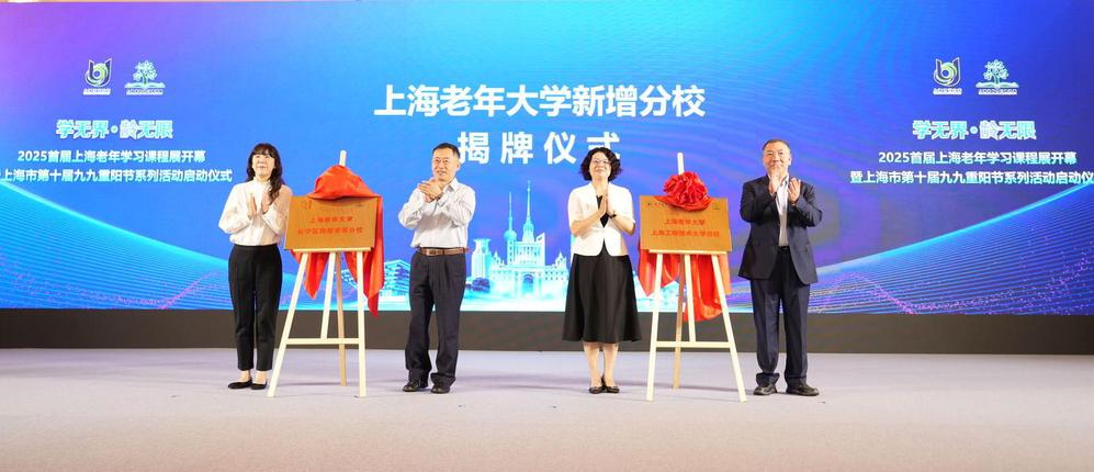 朱晓青与上海开放大学副校长、上海老年大学校长王松华共同为上海老年大学上海工程技术大学分校揭牌。这标志着我校老年大学积极融入老年教育发展的大格局,进一步拓展与优化老年教育资源,为更多老年人提供优质的学习平台。